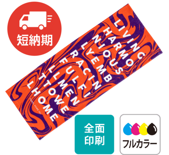 チームタオルやスポーツ用に。大きめの柄が映えます。