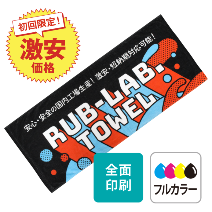 全面にフルカラーでプリント可能なタオルが今だけの特別大特価!写真やグラデーションなどのフルカラーデザインの表現が可能なインクジェットというプリント方法です。まずはお気軽にお問合せください。